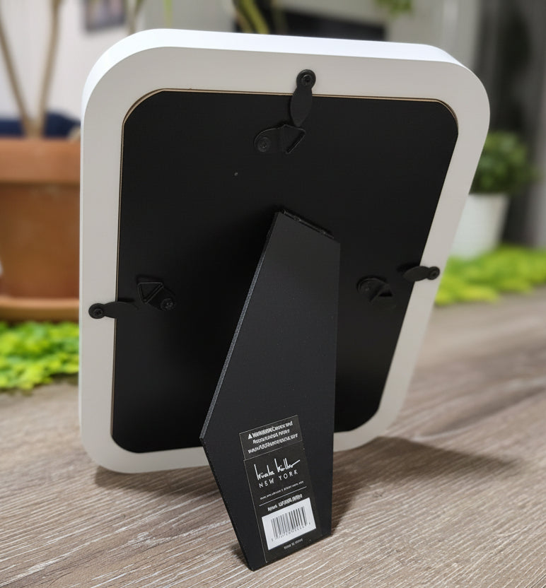 The frame can be set on a table or hung on a wall. *Due to the frames rounded edges the corners of the artwork are also rounded.