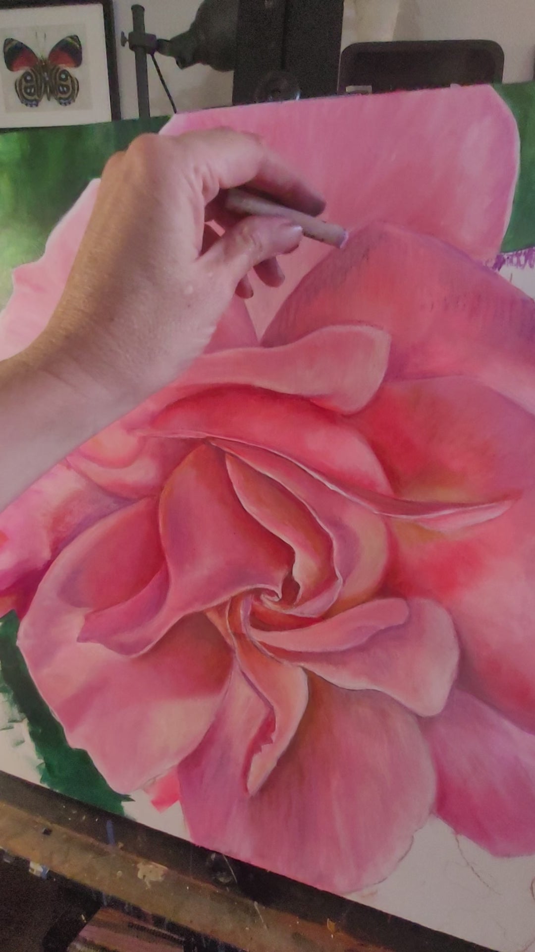 "Safe to Become" is an original oil pastel on a wood canvas measuring 20"x20"x1.75". Flowers begin as a tight bud, all closed up, yet full of potential and beauty before they gracefully and bravely open up their petals more and more to vulnerably reveal all of themselves! This is where we get to fully appreciate their fragrance and beauty!